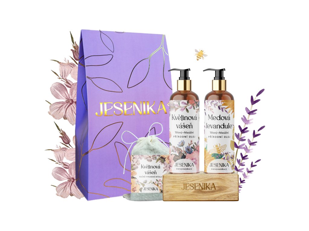 - Olej Medová levandule 200 ml: zklidňující olej s vůní levandulového medu, který harmonizuje nervovou soustavu, uvolňuje napětí a podporuje klidný spánek. Skvělý pro večerní péči.
