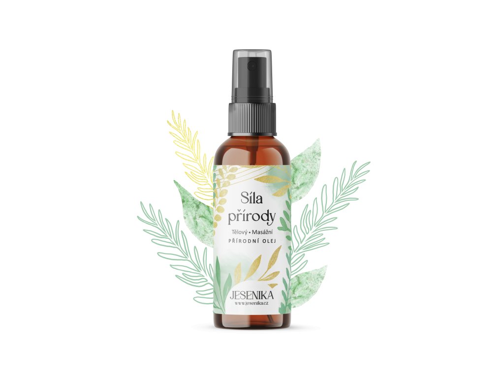 Povzbuzující přírodní tělový olej Síla přírody je perfektním pomocníkem, pokud máte nabitý den a potřebujete chvilku klidu. Jste v jednom kole? Uvolnění Vám přinese jednoduchá masáž sebe sama. Namasírujte si šíji, spánky, uši, chodidla nebo zápěstí. Taková aroma masáž pomůže zklidnit tok myšlenek, harmonizuje tělo a duši, rozproudí lymfu, dodá potřebnou energii, sílu a zlepší koncentraci! Olej Síla přírody má lehkou texturu, která se rychle vstřebává do pokožky a zanechává ji jemnou a vyživenou. Otevřete lahvičku, vdechněte tu nádhernou dřevitou bylinnou vůni… Cítíte, jak vítr laskavě kolébá citronovou trávu a rozmarýn, jak radostně bzučí včely v houštinách peprné máty, jak krásně zpívají ptáci v cedrovém lese v Himalájích? Směs těchto úžasných éterických olejů pokožku zahřeje, prokrví a máta dodá příjemné ochlazení.